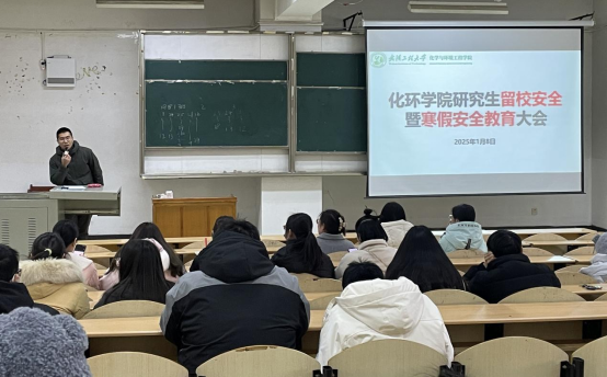 在L1119教室召开2025年研究生寒假留校安全工作会议。本次会议由辅导员张光宇和仝壮主讲,全体研究生参加会议。