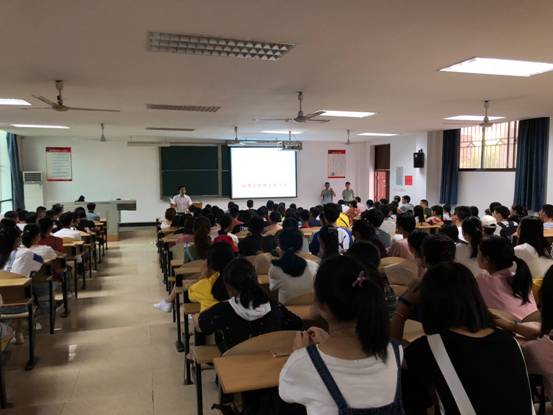 陈嵘教授和杨光忠教授分别为化学专业和环境专业全体新生作专业介绍。