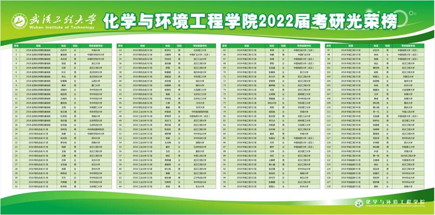 2022届285名毕业生中,有128人继续攻读硕士研究生,2018级十个班级中,有八个班级的录取率超过40%,其中2018级应用化学理科基地班和2018级环境工程一班录取率突破60%,分别为66.67%和65.52%,海角视频