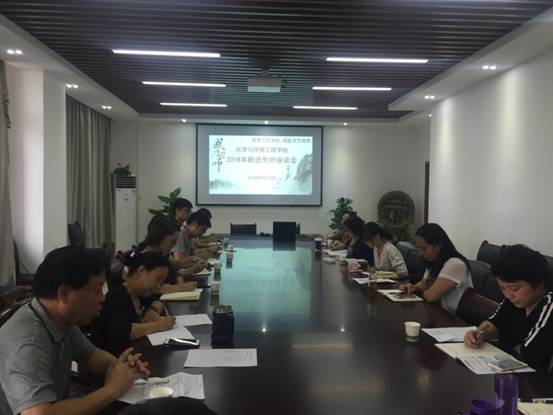 会议室召开2018年新进教师座谈会,院党委书记谢春晖主持会议,副院长王营茹、余军霞出席,全体2018级新进教师参加会议。