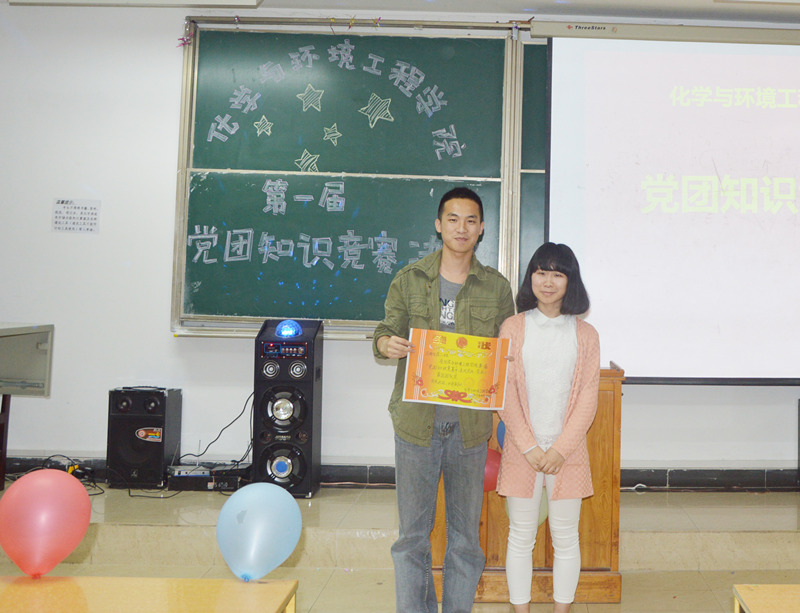 参与答题,并送出精美礼品。比赛结束后由院领导给冠军应化2班彭冲、亚军应化4班曹梦玲季军环工1班陈