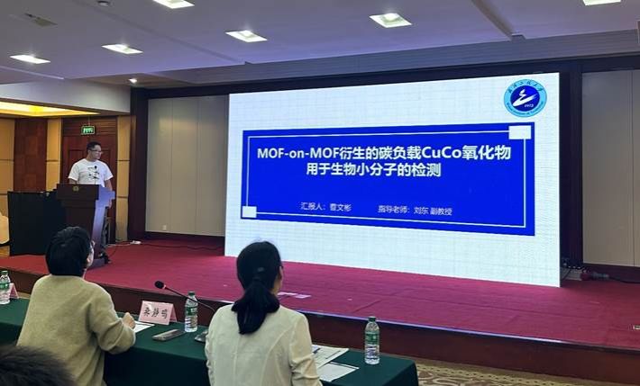 部分老师和研究生参加了此次会议。2021级硕士研究生曹文彬(导师:刘东)在会议上作了主题为《MOF-on-MOF衍生碳负载的铜钴氧化物用于生物小分子传感》的报告,并荣获研究生组二等奖。