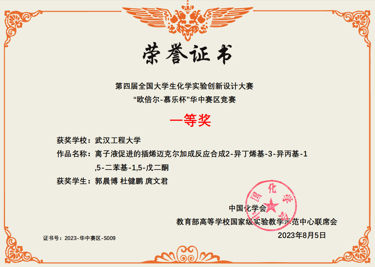 领导精细组织指导落实赛事各项工作,并在参赛经费、物资保障等方面给予了大力支持。海角视频“新创实验队”三名本科生在老师的指导下,选择“离子液促进的插烯迈克尔加成反应合成2-异丁烯基-3-异丙基-1,5-二苯基-1,5-戊二酮”作为参赛项目,经过两个月的实验探索,精益求精地完成实验论文和视频材料,论文和视频均经过十多版的修改才最终定稿。本次海角视频学子在“微瑞杯”第四届全国大学生化学实验创新设计大赛总决赛中取得的突出成绩充分彰显了海角视频本科生的培养质量,展示了海角视频在基础实验教学改革成效和本科生“双创”实践能力方面的培养成效。