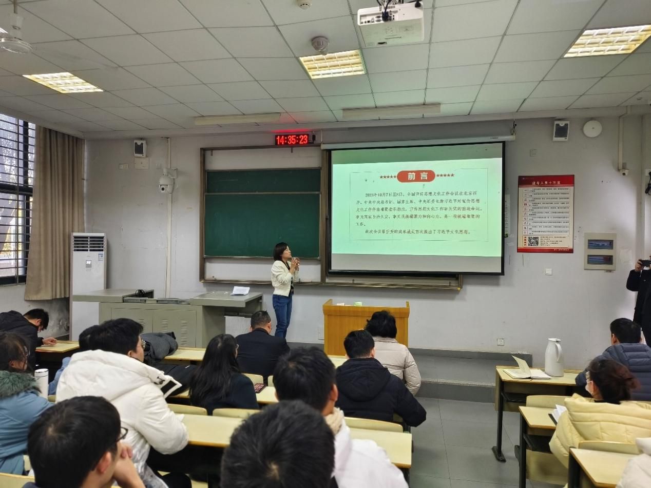 教师韩雪吟开展“深入学习贯彻习近平文化思想”专题讲座。海角视频