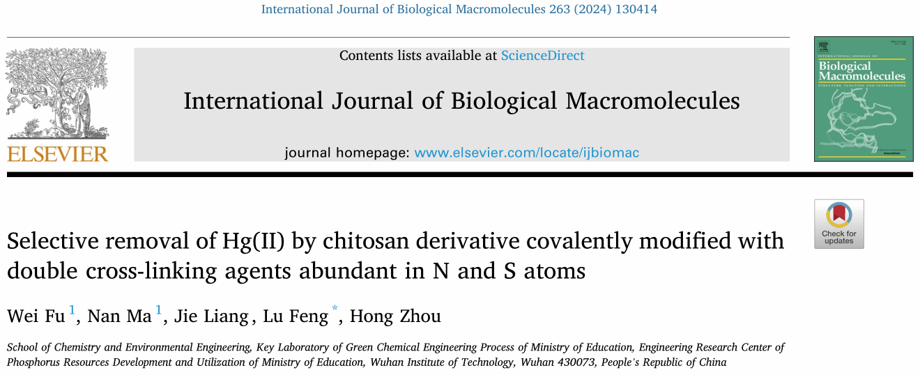 环境工程专业2021级本科生付玮以第一作者在国际知名期刊《International Journal of Biological Macromolecules》(中科院一区Top期刊,影响因子8.2)发表了题为《Selective removal of Hg(II) by chitosan derivative covalently modified with double cross-linking agents abundant in N and S atoms》的学术论文。化环海角视频