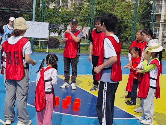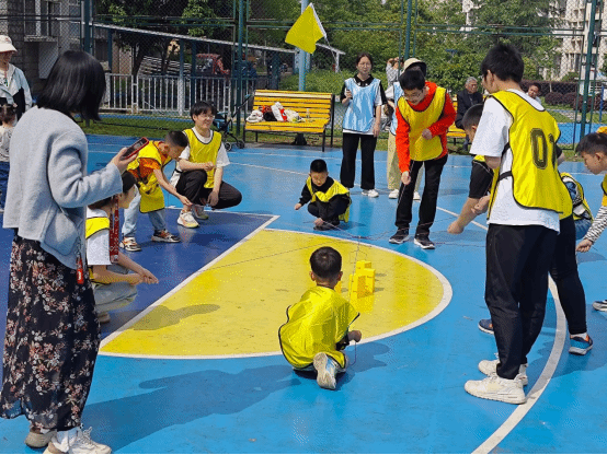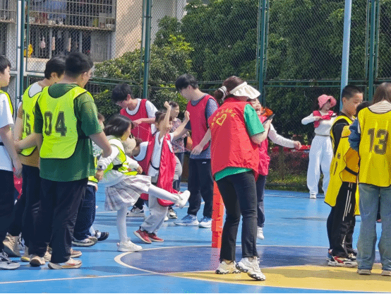 活动现场,志愿者们分工合作,一部分志愿者带动居民热情参赛并维护现场秩序,一部分志愿者参加到篮球热身、背夹篮球、积木搭建、学袋鼠跳等各个项目中,他们忙碌的身影出现在赛场的每个角落。