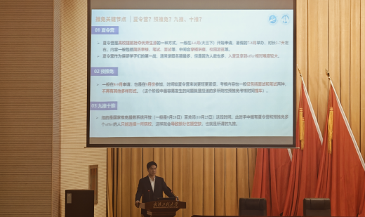 讲座以成长经验为主题,主要从保研经验、科创经验方面详细分享了他大学四年的成长体会和感悟。他首先谈及大学科研竞赛对于解决实际问题能力的重要支撑作用,对于将来进一步深造和就业都是很好的简历加分项;接着对推免概念、学校政策、推免关键节点解读,以时间轴的形式,和“4个大项+1个加分”说明如何打造导师喜欢的多边形战士,随后通过推免文书的准备,为同学们介绍个人简历、导师推荐信以及如何联系导师的个人经验方法,之后对面试流程和技巧进行分享;然后谈及他的个人成长经验,从大一开始就自发主动进入科研实验室,本着对指导老师和自己高度负责地态度,充分发挥主观能动性,大二开始积极主持、推进各类项目,及时高效地完成科研工作并发表论文专利成果,并以取得的成果积极参加各类适合的赛事,大三保持劲头,向深推进,最后收获成果。最后他还重点对保研过程中的信息搜集、成绩、竞赛论文等要素进行精彩的拓展。在讲座的过程中,曾书航时常提及同学们要尽早树立个人目标,无论是考研,就业还是考公,告诫大家大学就是进入社会前的演习,要做好规划,用好自己的宝贵时间,努力提高自己的个人综合能力。在交流互动环节,就同学们关心的“阅读论文是否与实验同时推进”“保研面试的流程及重点考察内容?”“如何兼顾科创和学业成绩?”等多个问题进行了认真仔细的回答。