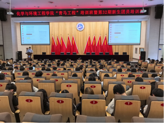 在四教报告厅举行“青马工程”培训班暨第32期团员培训班开班仪式。院党委副书记许守飞、团委书记李杨、团委干事张光宇、各团支部学生骨干、团员代表以及24级全体新生参加本次开班仪式。仪式由李杨主持。