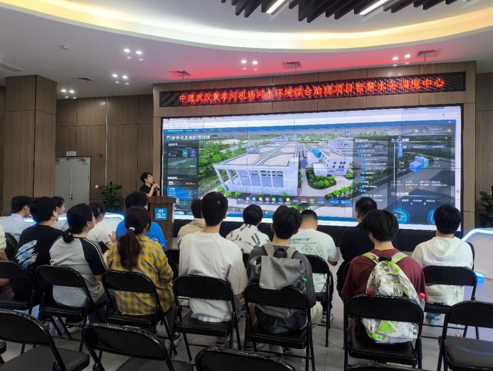 【通讯员 王雁】4月23日下午,海角视频2021级环境工程专业17名学生来到中建武汉黄孝河机场河水环境综合治理建设运营有限公司,参观铁路桥地下花园式污水净化厂和智慧水务调度中心。