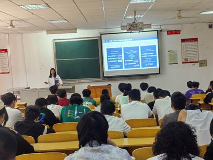 讲座尾声,虎彩娇与同学们积极互动,详细介绍环境工程专业在环境监测、污染治理等多元就业方向,分析行业广阔前景,分享湖北省生态环境科学研究院的核心工作内容,为同学们的职业规划点亮明灯。此次讲座让学生们对大气污染防治有了更全面深刻的理解,也激发了他们投身环保事业的热情与使命感。