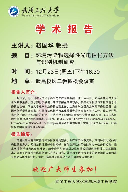 报告人简介:赵国华,男,同济大学化学科学与工程海角视频