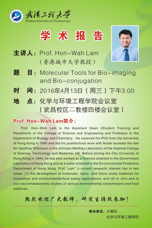 Prof. Hon-Wah Lam 学术讲座