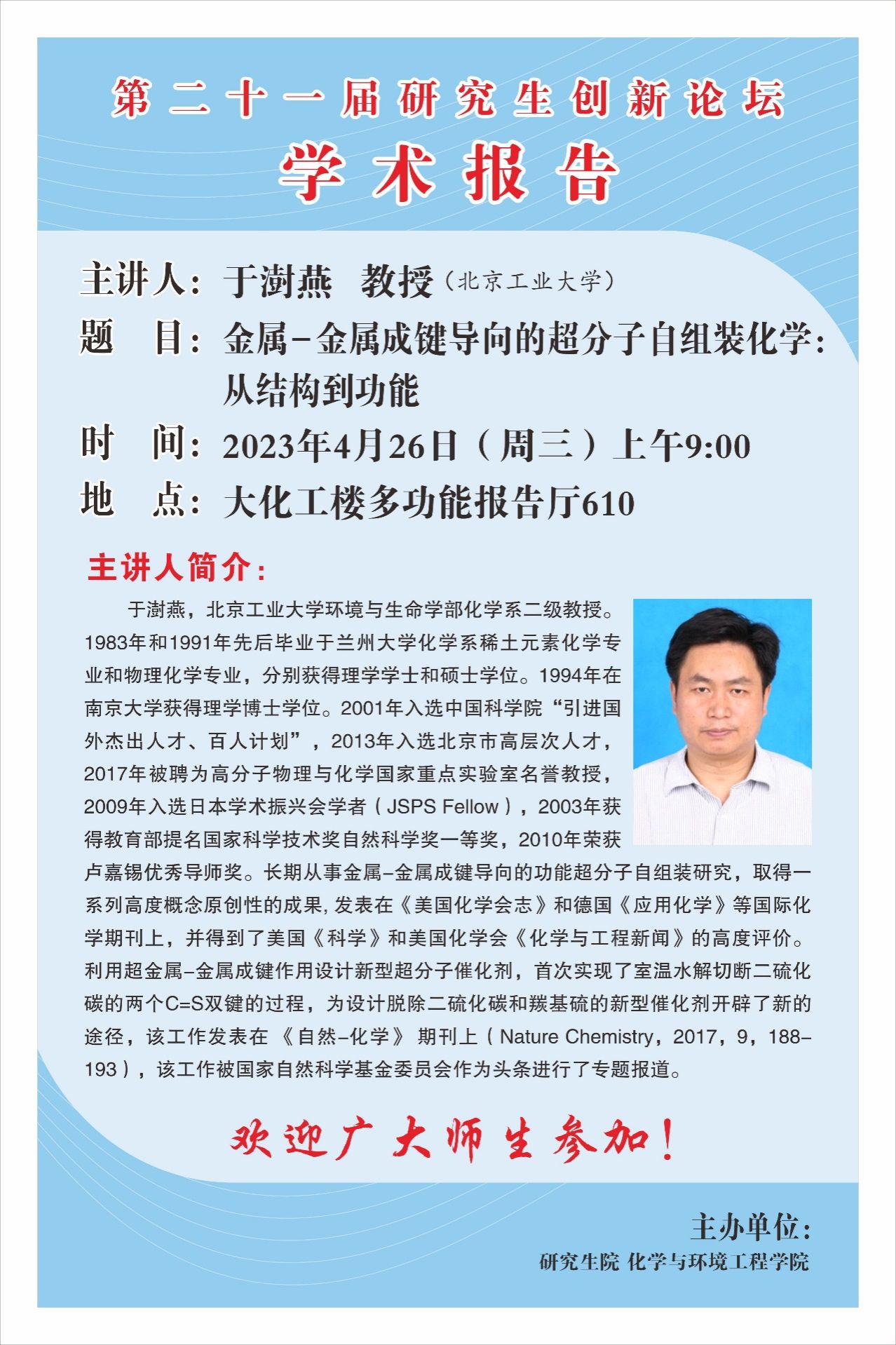 【研究生创新论坛】金属-金属成键导向的超分子自组装化学:从结构到功能