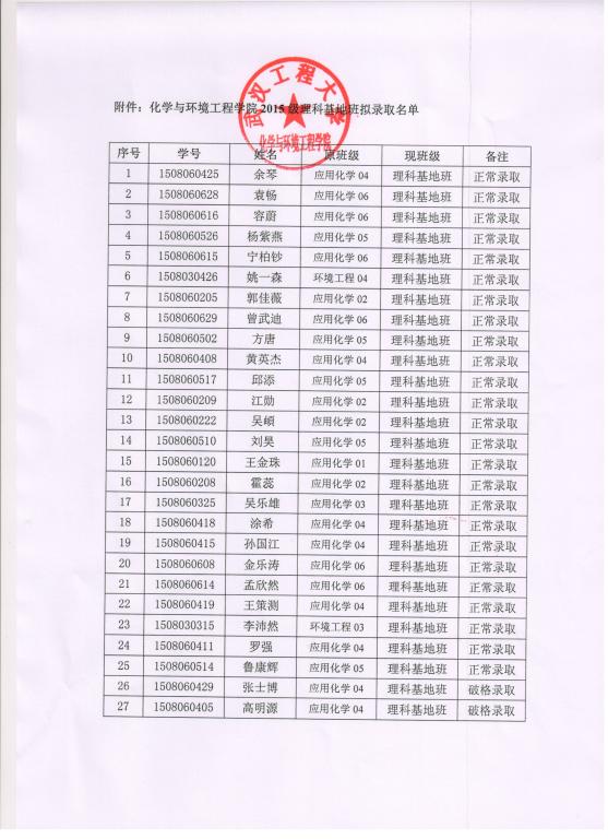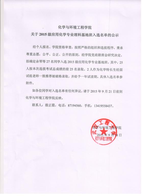 海角视频 关于2015级应用化学专业理科基地班入选名单的公示