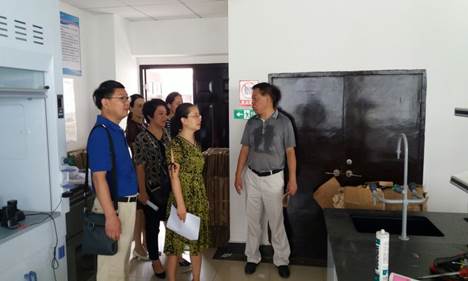 检查组一行来到一实验楼检查实验教学准备工作情况,重点察看了四楼无机化学实验室、五楼有机化学实验室的实验基础设施改造工作现场。在学校领导和有关部门的大力支持下,自7月14日开始,实验中心启动了实验台柜、通风系统的整体改造工作,有关实验员整个暑期坚守岗位,协调施工单位有效推进改造工作。新学期,新面貌,通过基础设施改造,期望为本科教学提供标准化的实验教学平台。