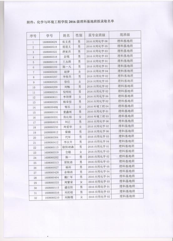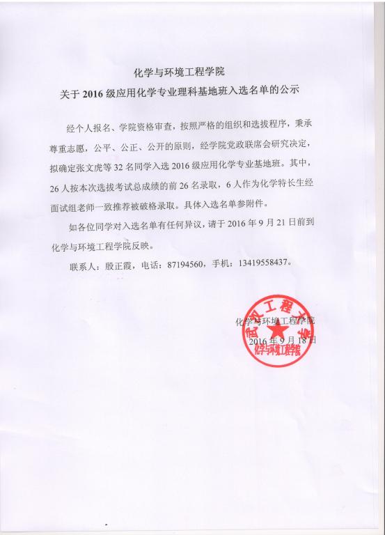 海角视频 关于2016级应用化学专业理科基地班入选名单的公示
