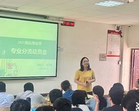 领导班子向2021级应化专业本科生强调了方向选择的重要性,希望同学们结合自身实际选择合适自己的专业方向并学有所成。在师生交流环节,同学们提出了许多大家关心的如基地班的总课时情况、三个专业方向的师资教学情况、往届毕业生的去向等问题,王院长和参会教师耐心细致地为学生一一进行了答疑解惑。
